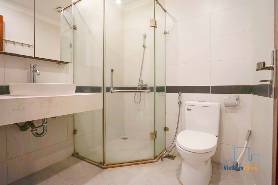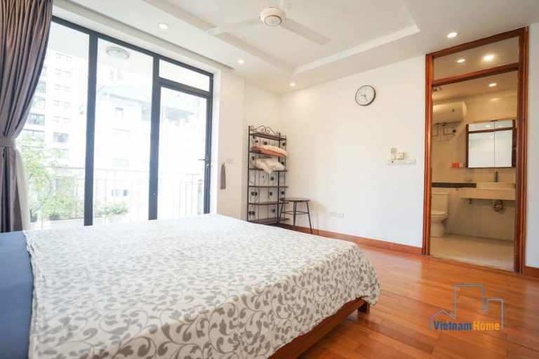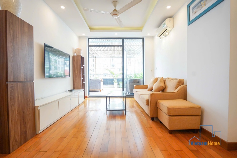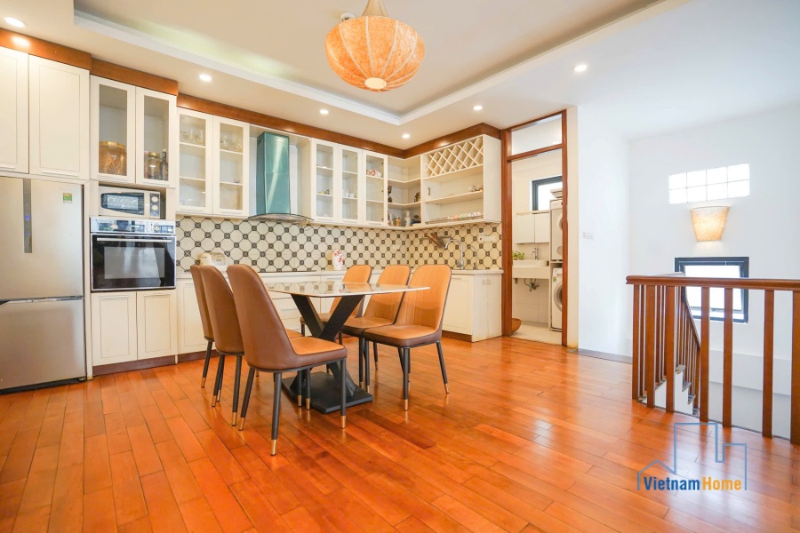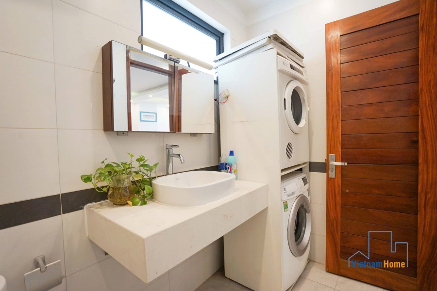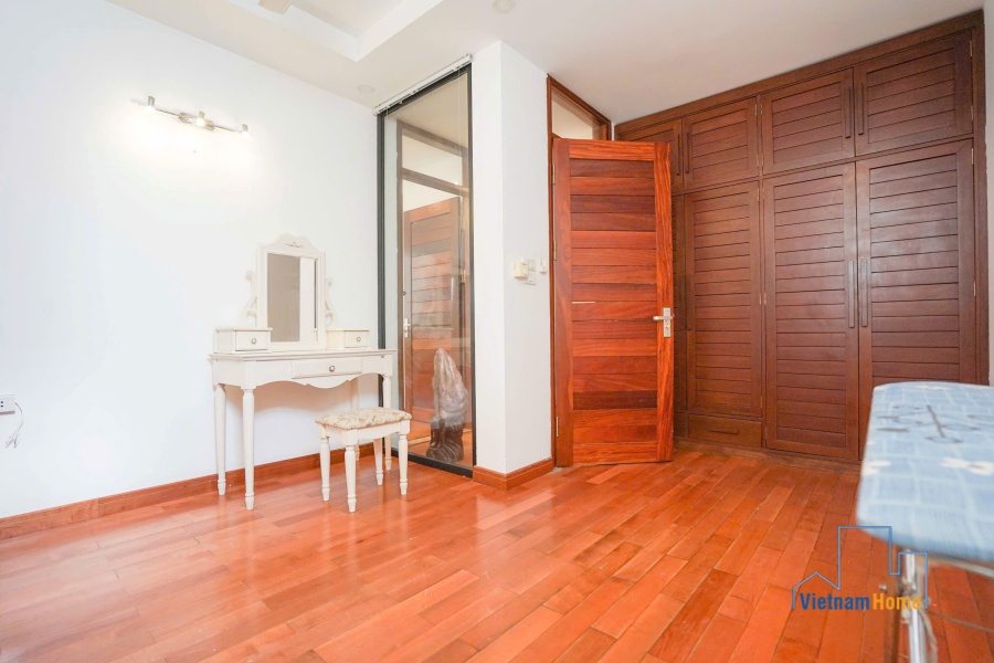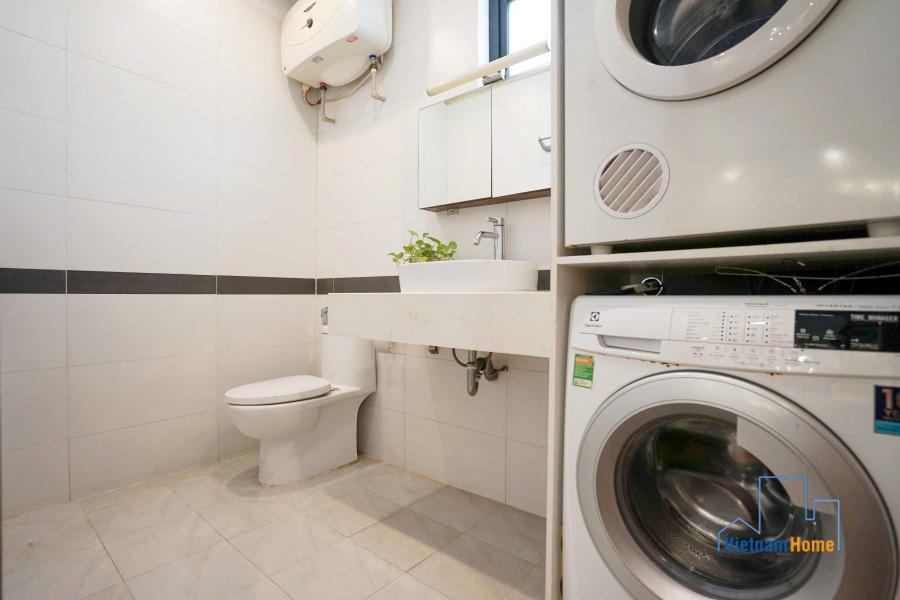 This penthouse apartment is located in one of the most best location in Tay Ho, Hanoi. There are 1 living room, 3 bedrooms, 1 open kitchen and 2 WCs. Specially you can enjoy over city view from the terrace on the rooftop, it looks like a mini garden with many trees and flowers.