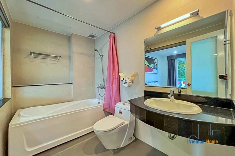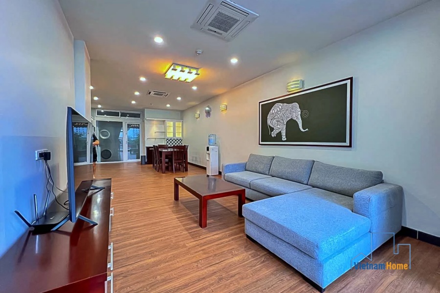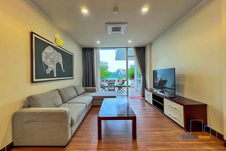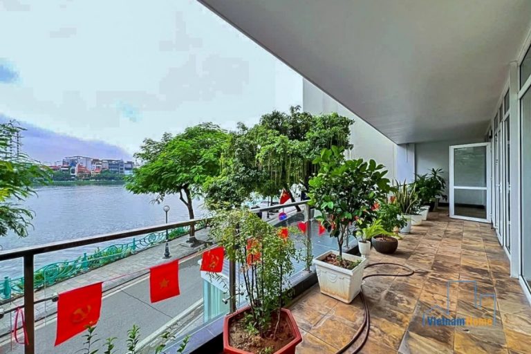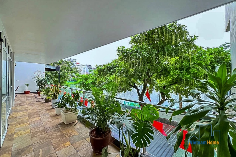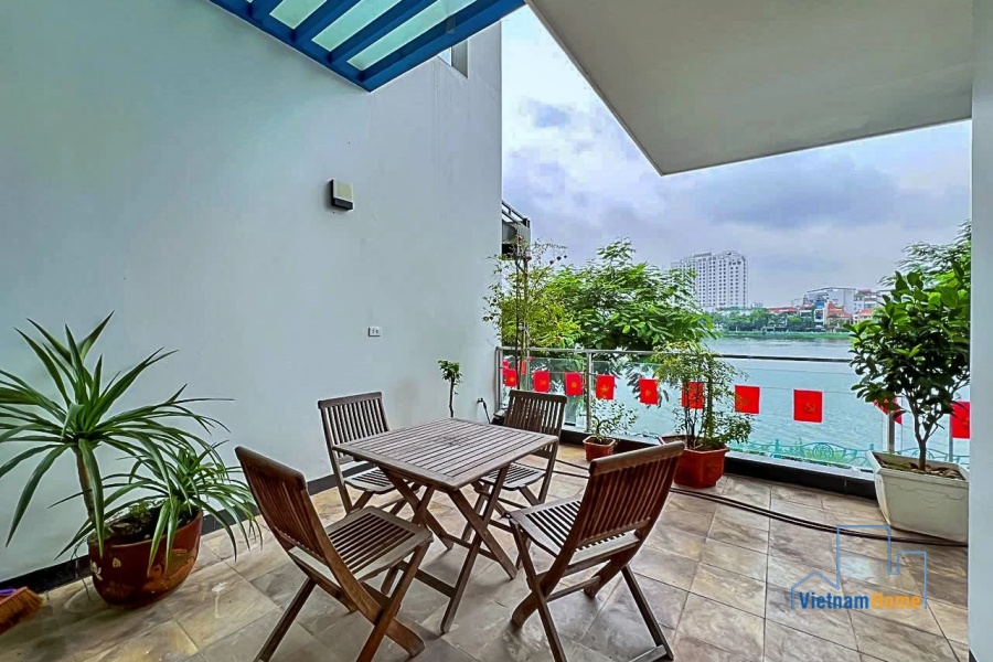 ハノイ・タイ湖エリア、レイクビュー&広いバルコニー付きの2ベッドルームアパート