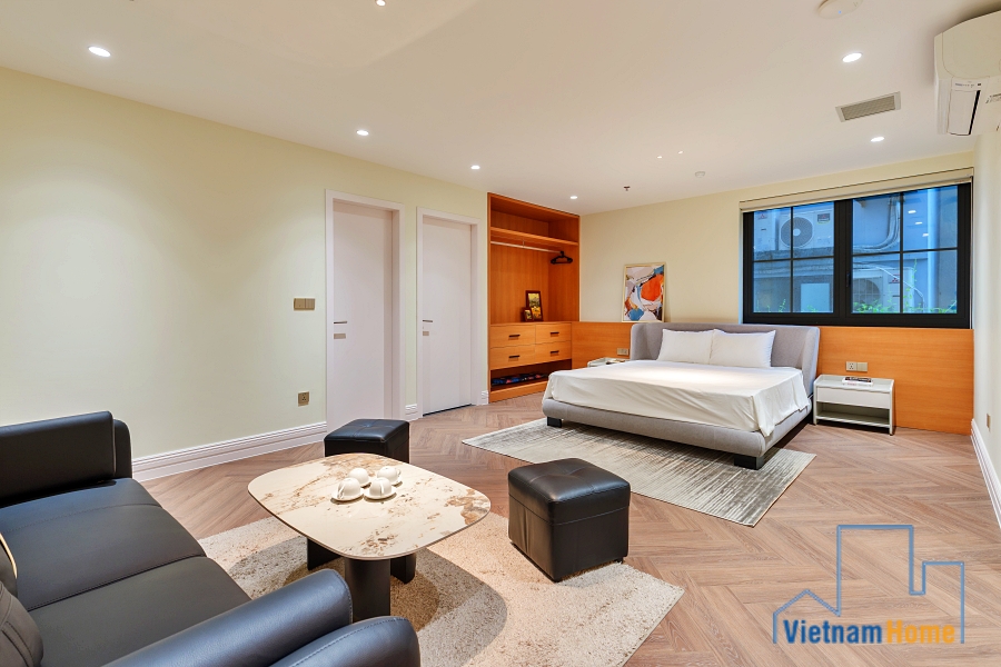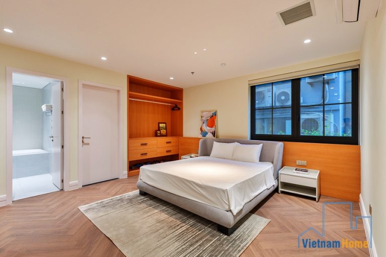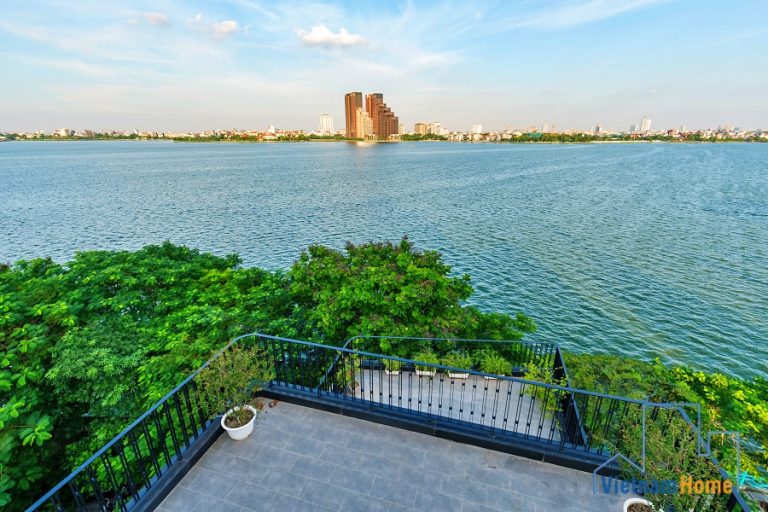 クアンアン通りに位置する、湖の景色を望む好立地の3ベッドルームアパートメント賃貸