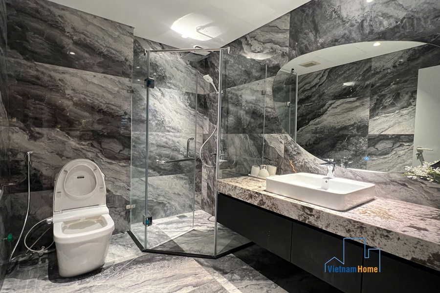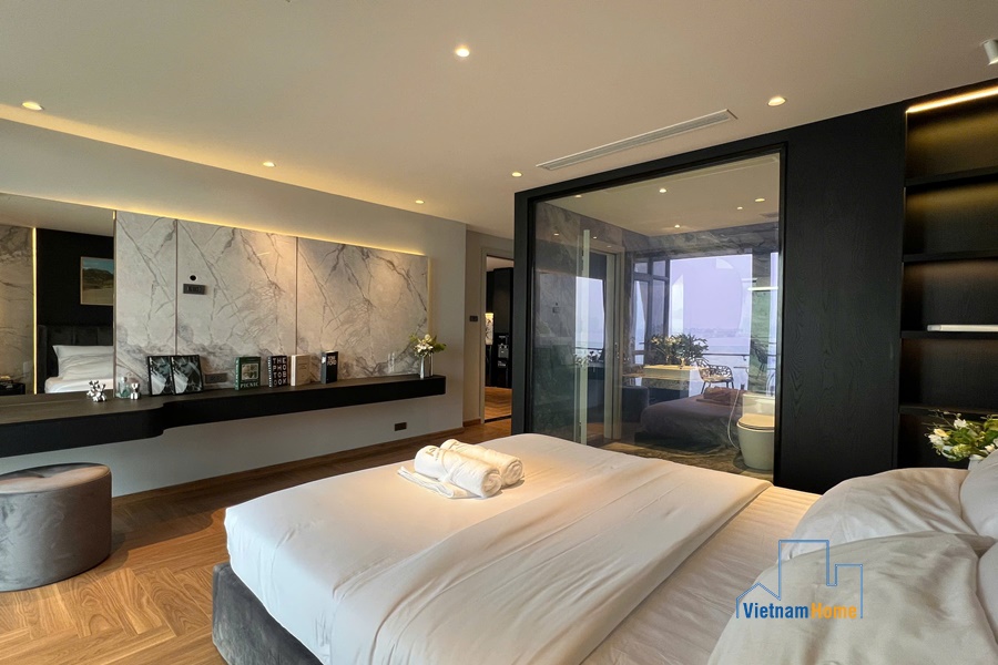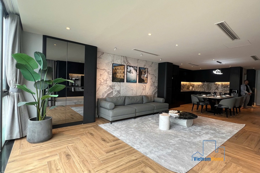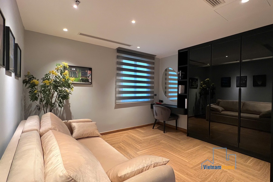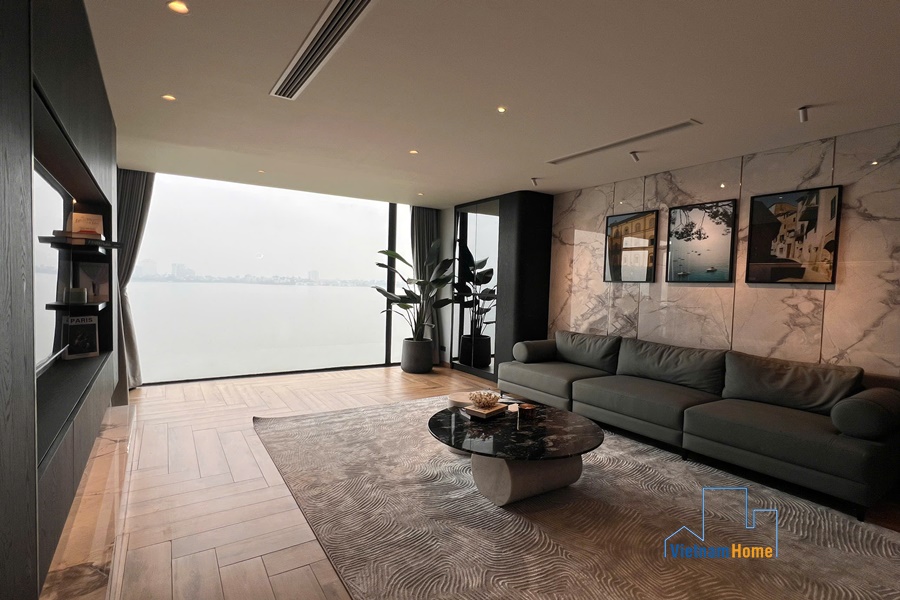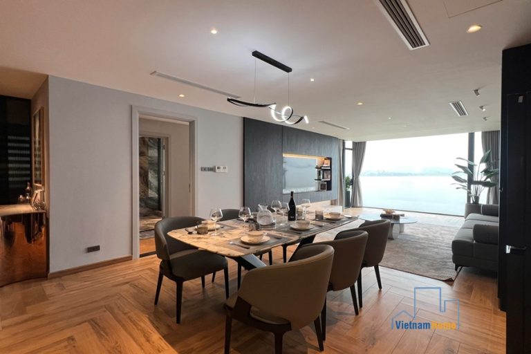 Located on Nguyen Dinh Thi street, this spectacular lake-view unit is very suitable for those who love staying close to the lake bank with sunset and sunrise every day. The advantage of the convenient location makes your family travel easier because you can easily access other areas of Hanoi from this central point.