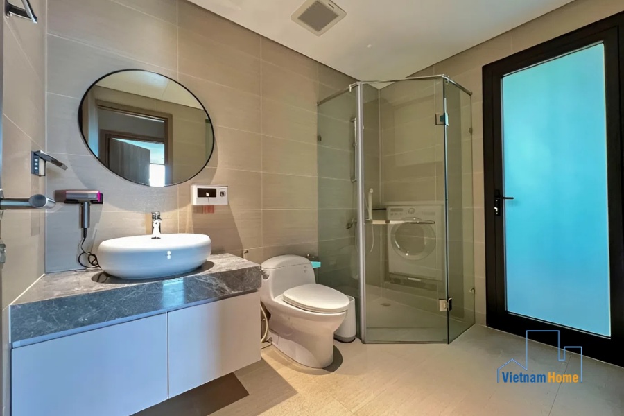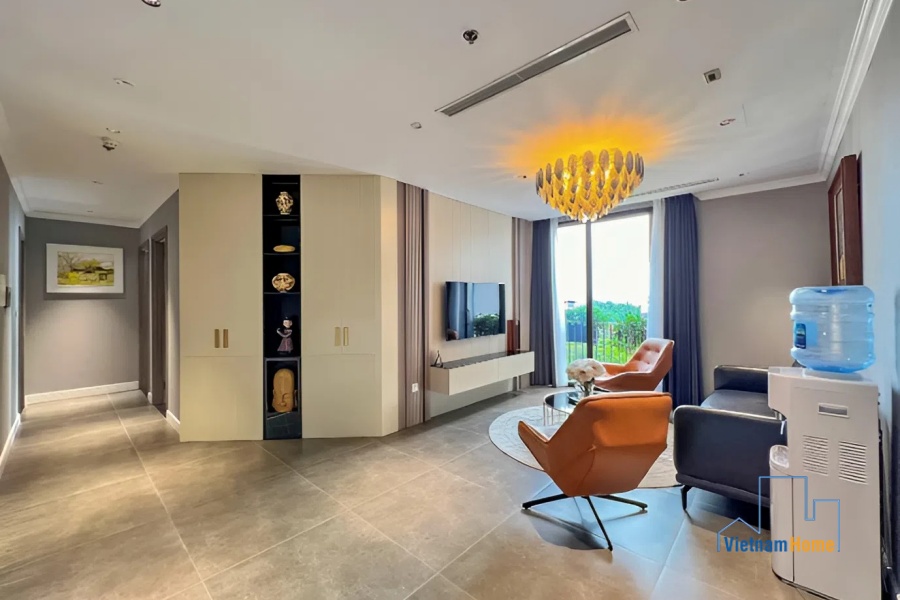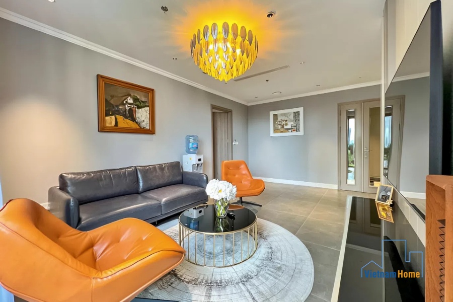 With its predominantly white color scheme, this apartment creates a luxurious feel for its residents. Besides, all parts of the unit are fully furnished with high-quality furniture and smart electronic household appliances, providing the best living experience for occupants.