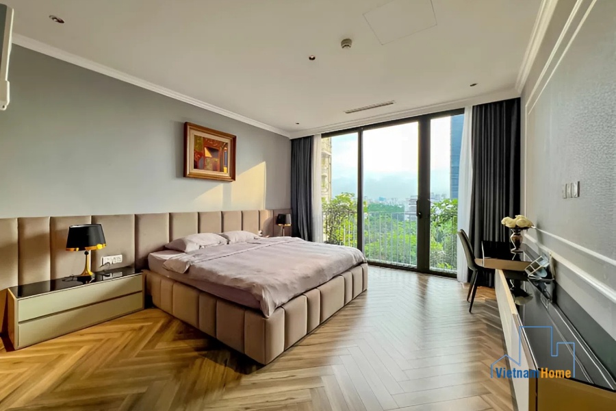 With the area of 250 square meter, divided into 03 separated bedrooms, a big living room with a large open European-style kitchen, this apartment is spacious enough for those who love an airy space close to Hanoi central.