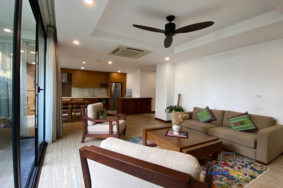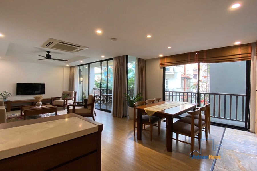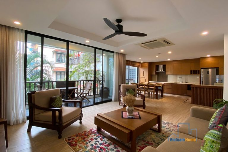 Quiet and green view apartment for rent in Xuan Dieu, Tay Ho, Ha Noi